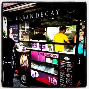 Quick shots from my instagram. 1 + 2. Lunch at Goodness Badness pop up restaurant by Elettra Wiedemann. It’s across the street from the Lincoln center. Details to come, but you can totally go check it out now if you’re looking for breakfast or lunch in the area. 3. Brandon Holley of Lucky magazine introducing Diane von Furstenberg. 4. Urban Decay pizza cart feeding stylish citizens with cold drinks and makeup themed personal pies. 5. Concept Korea presentation. 6. Eletrra chatting with us over coffee at Goodness Badness.