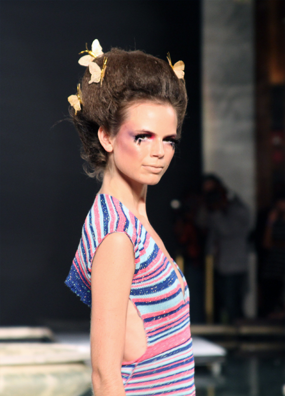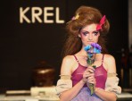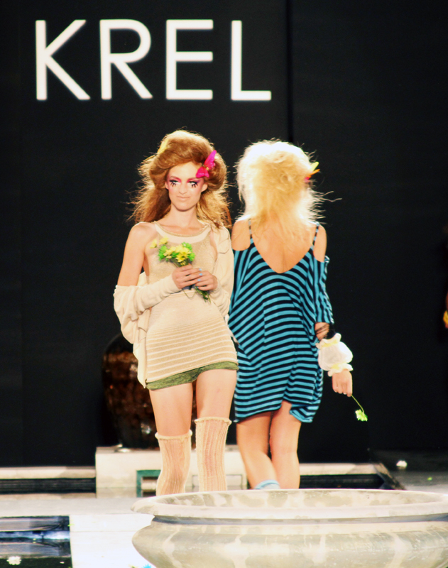 My first show for Funkshion Fashion Week at The Setai Hotel in Miami was Krelwear. I had a lot of fun going backstage and shooting the hair and makeup because it was so exceptional. I love the butterflies and flowers in the firls hair. Some of the models scattered flowers on the runway and threw some into the audience. It was a very light hearted atmosphere. The show opened with a dancer dancing down the runway and she continued to dance at the sides of the runway all throughout the show. In the beginning she was also accompanied by a large man dressed as a Faun. After all the theme was Flora & Fauna. I was adjusting my camera for the show lighting so I don’t have share-worthy pictures of them.