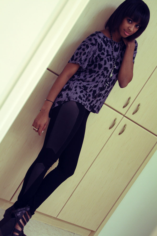 Wearing: H&M leopard print tee, Aritzia leggings, Jeffrey Campbell Clinic’s, Aldo double finger pyramid rings, Assorted necklaces from Guess and Forever 21
